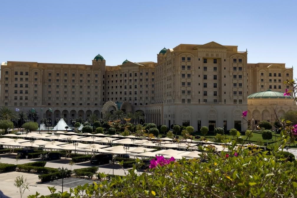 3月24日,美國和俄羅斯代表團(tuán)在沙特阿拉伯首都利雅得舉行會談。圖為美俄代表團(tuán)舉行會談的酒店。新華社記者王東震攝