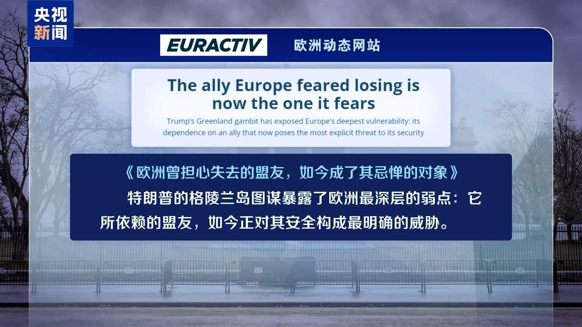 歐洲動(dòng)態(tài)網(wǎng)站6日以《歐洲曾擔(dān)心失去的盟友,如今成了其忌憚的對(duì)象》為題評(píng)論說,“特朗普的格陵蘭島圖謀暴露了歐洲最深層的弱點(diǎn):它所依賴的盟友,如今正對(duì)其安全構(gòu)成最明確的威脅。”文章還提醒說,我們正進(jìn)入一個(gè)“強(qiáng)權(quán)即公理”的新世界——而歐洲人對(duì)此毫無準(zhǔn)備?;蛟S,格陵蘭島可能帶來的羞辱,將促使歐洲人反思這一現(xiàn)狀,并最終采取行動(dòng)改變局面。