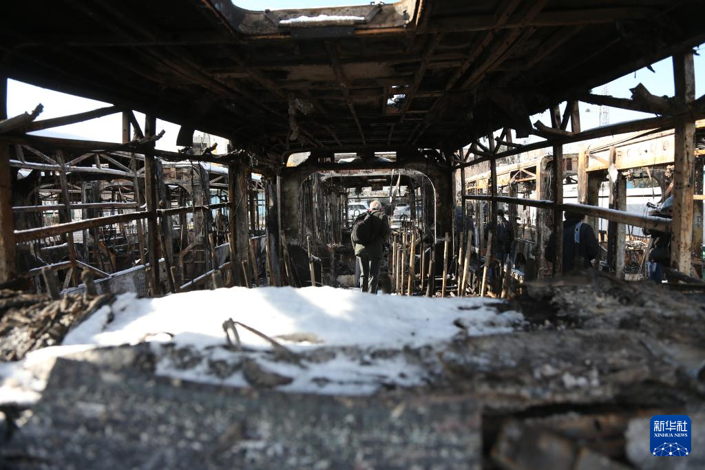 1月21日,在伊朗首都德黑蘭,一名男子站在一輛于近期騷亂中被燒毀的公交車內(nèi)。新華社記者 沙達(dá)提 攝