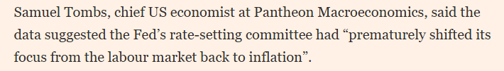 報道還援引萬神殿宏觀經(jīng)濟咨詢公司經(jīng)濟學(xué)家塞繆爾·湯姆斯的話稱,美國勞工部的數(shù)據(jù)表明,美聯(lián)儲聯(lián)邦公開市場委員會 “過早地將注意力從勞動力市場轉(zhuǎn)向了通脹問題”。