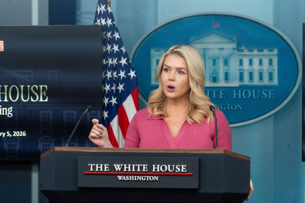 2月5日,在美國(guó)首都華盛頓白宮,白宮新聞秘書萊維特出席記者會(huì)。新華社發(fā)(李源清攝)
