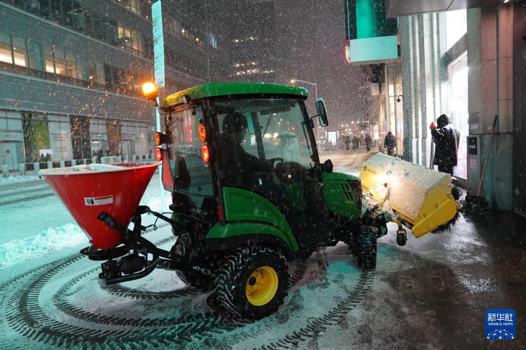 2月22日,在美國紐約,一輛鏟雪車清理人行道積雪。新華社記者 張鳳國 攝