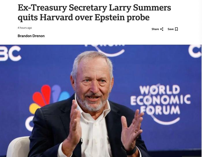 據(jù)報道,哈佛大學(xué)在25日的一份聲明中表示,薩默斯的離職“與哈佛大學(xué)正在對愛潑斯坦案相關(guān)文件進行的審查有關(guān)”。