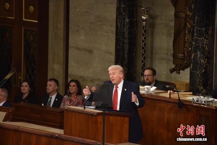 當?shù)貢r間2月24日晚,美國總統(tǒng)特朗普在國會參眾兩院聯(lián)席會議上發(fā)表國情咨文講話,聚焦經(jīng)濟、移民等議題。這是特朗普在本總統(tǒng)任期內首次發(fā)表國情咨文。 記者 沙晗汀 攝