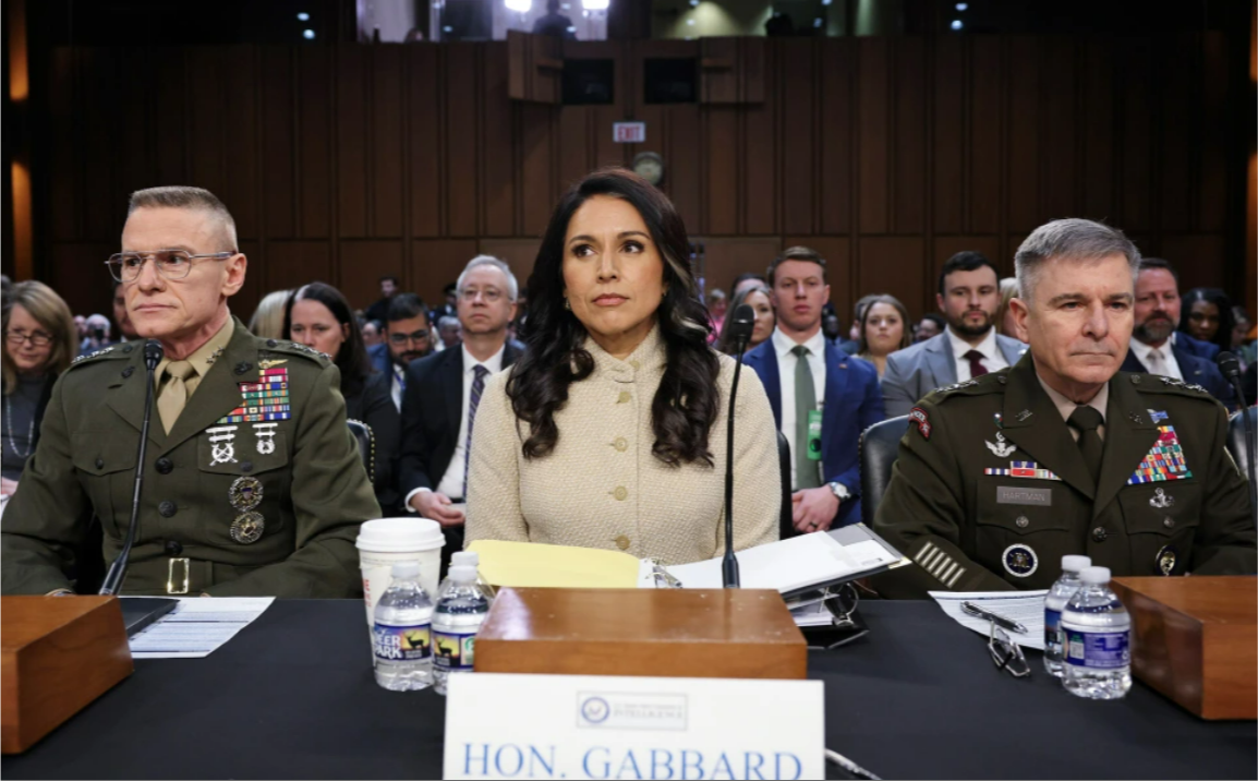 加巴德3月18日出席國會參議院情報特別委員會就美國所面臨“全球安全威脅”舉行的年度聽證會 圖源:美國全國廣播公司(NBC)報道截圖