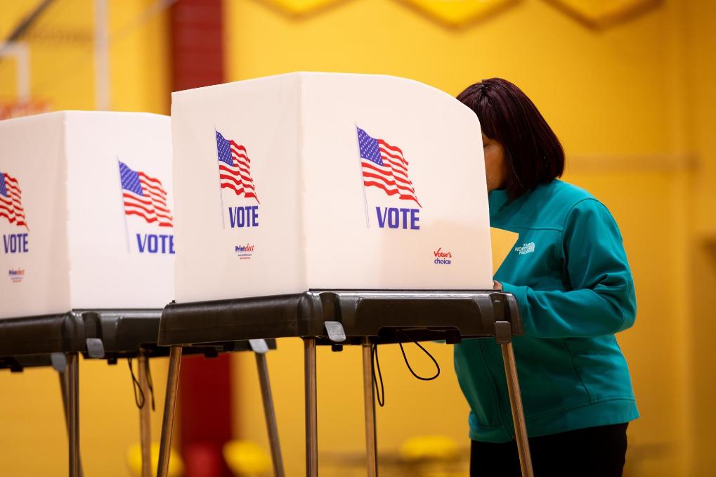 2024年3月5日,選民在美國弗吉尼亞州彼得斯堡的投票點參與投票。新華社發(fā)(溫斯特德·巴恩斯攝)