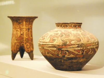 夏商時期彩繪陶鬲、彩繪陶罐。杜建坡攝