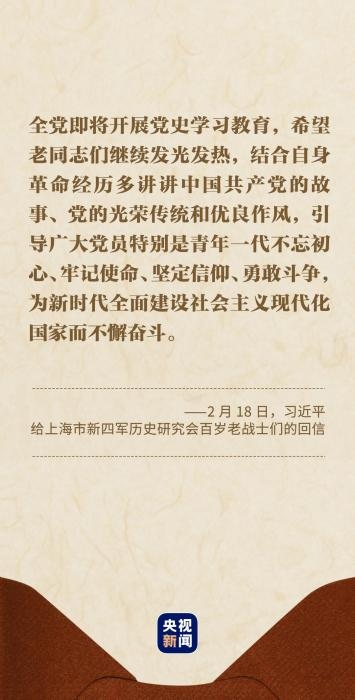 習近平總書記在回信中說:“你們青年時代就投身革命,為黨和人民事業(yè)英勇奮斗,期頤之年仍心系黨史宣傳教育,深厚的愛黨之情令人感佩?!?/p>
