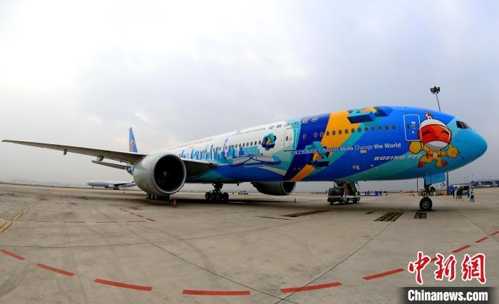 全球首架世界技能大賽主題彩繪飛機成功首航 南方航空供圖