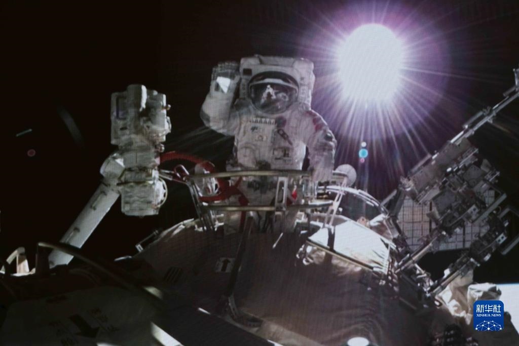 這是2021年11月7日在北京航天飛行控制中心拍攝的神舟十三號(hào)航天員翟志剛出艙畫面。新華社發(fā)(郭中正 攝)