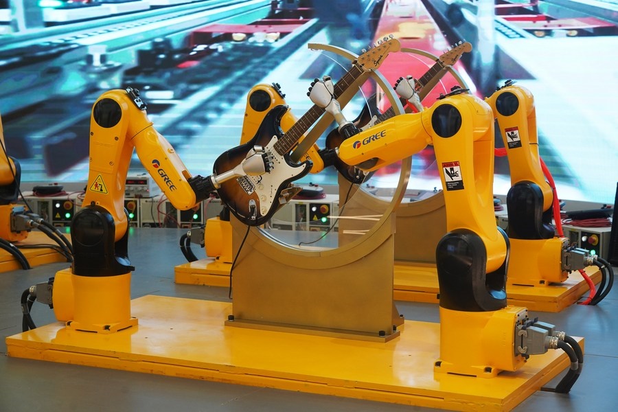 在贛州市格力小鎮(zhèn),機(jī)器人樂隊(duì)演奏音樂。新華社記者 萬象攝