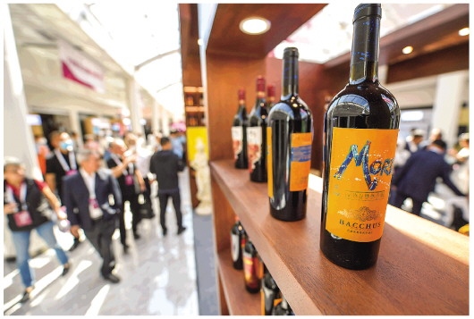 這是賀蘭山葡萄酒展銷會(huì)現(xiàn)場展示的寧夏葡萄酒(9月7日攝)。新華社記者馮開華攝