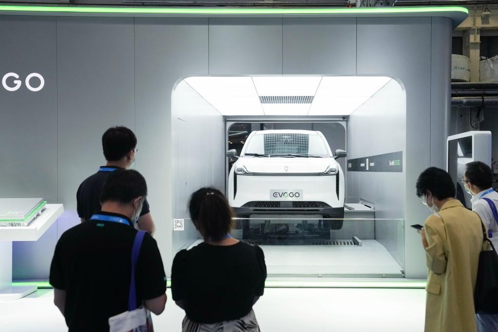 在電池制造企業(yè)寧德時代的展臺,一臺為新能源汽車更換電池的換電站正進行演示?!跋Mㄟ^最新研發(fā)的換電產(chǎn)品,讓電池成為共享資產(chǎn),化解續(xù)航里程、補電便捷性和購置使用成本三大電動車用戶痛點?!睂幍聲r代相關負責人表示,未來換電模式將和充電模式互為補充,共同支撐消費者的補能需求。