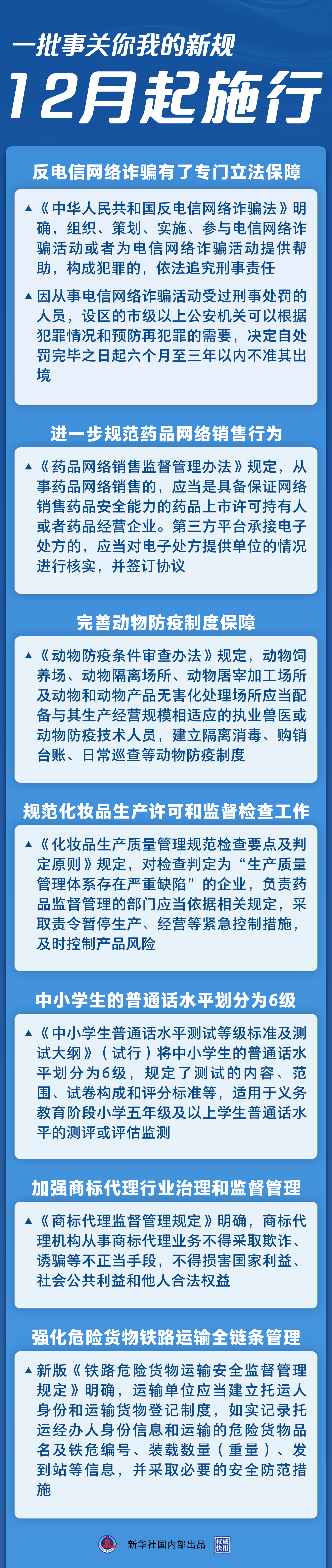 新華社北京11月30日電 題:12月,一批事關(guān)你我的新規(guī)開始施行