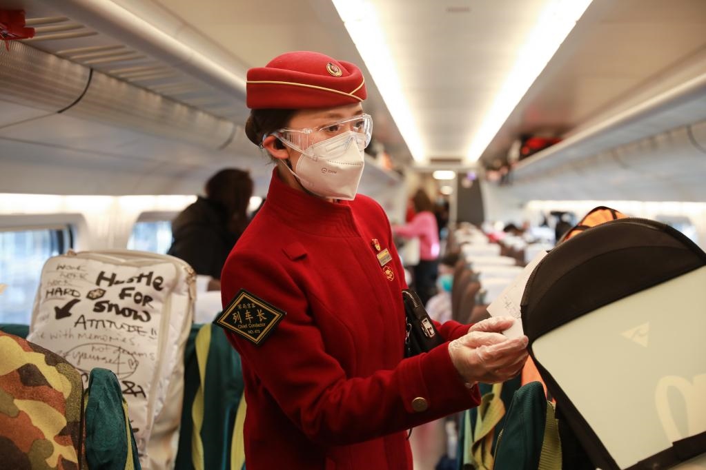 “冰雪線”上,點滴細節(jié)間彰顯著對冬奧盛會精彩的延續(xù)。記者采訪了解到,該線路的值乘班組是曾服務于冬奧會、冬殘奧會的北京客運段京張高鐵車隊“雪之夢”乘務組,班組人員均參與了盛會的交通運輸保障工作。在這個滑雪季和春運期間,他們將延續(xù)冬奧服務標準服務廣大旅客。