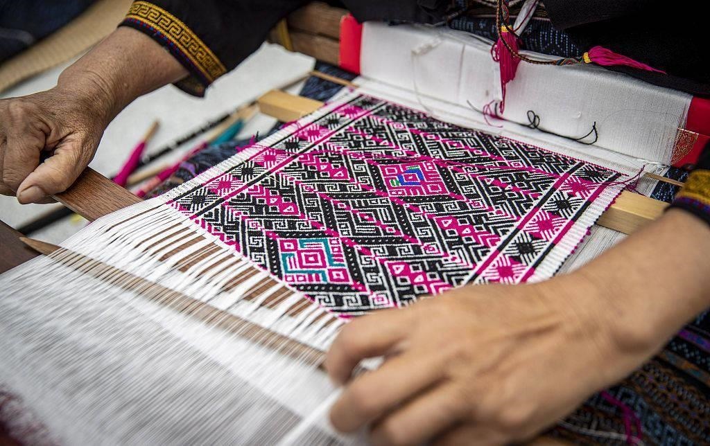 “九仙織女下凡間,開創(chuàng)黎錦三千年?!崩枳鍍号种械睦桢\紡、染、織、繡技藝,是國家級非物質(zhì)文化遺產(chǎn),被譽為中國紡織史上的“活化石”。