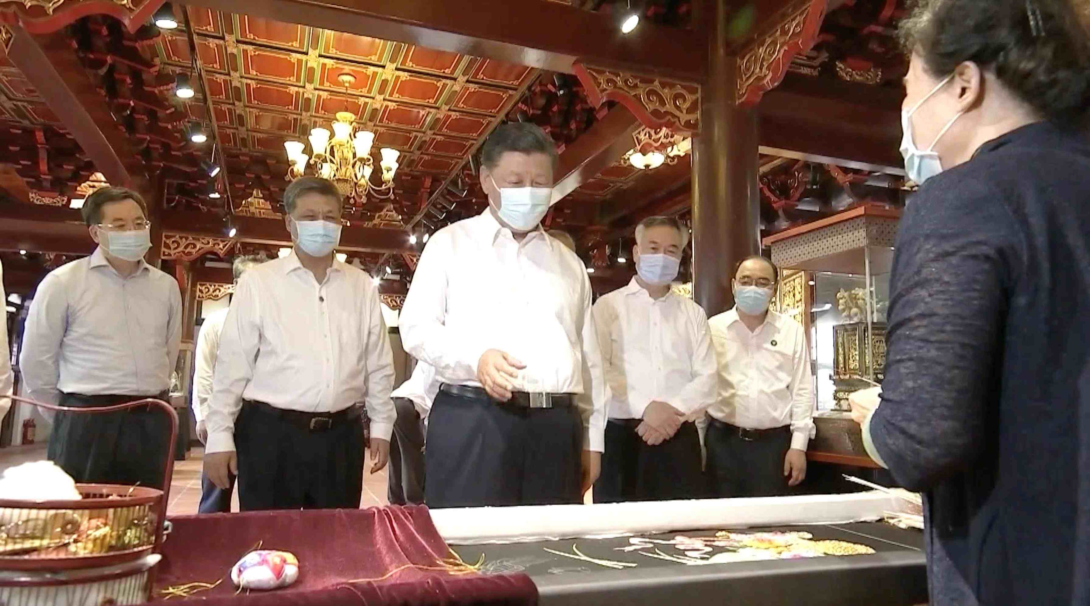 在潮州,總書記叮囑,要加強非物質(zhì)文化遺產(chǎn)保護和傳承,積極培養(yǎng)傳承人,讓非物質(zhì)文化遺產(chǎn)綻放出更加迷人的光彩;在四川成都戰(zhàn)旗村,總書記察看蜀錦、蜀繡等手工藝品展示,還買下一雙手工制作的唐昌布鞋;在江蘇徐州馬莊村的香包制作室,總書記對非遺傳承人王秀英制作的香包贊不絕口……