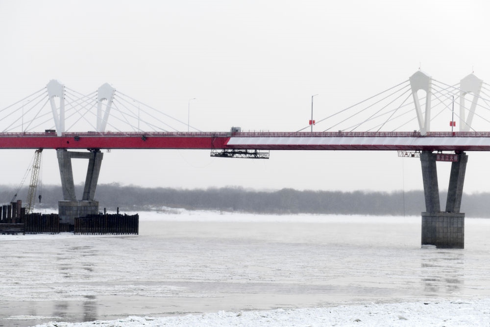 ↑這是中俄首座跨黑龍江公路大橋黑河-布拉戈維申斯克公路橋。這座大橋是兩國元首共同關(guān)心推動的重大跨境基礎(chǔ)設(shè)施項目,它的開通在中國東北地區(qū)和俄羅斯遠(yuǎn)東地區(qū)之間開辟新的國際運(yùn)輸通道,成為中俄跨境互聯(lián)互通建設(shè)的標(biāo)志。