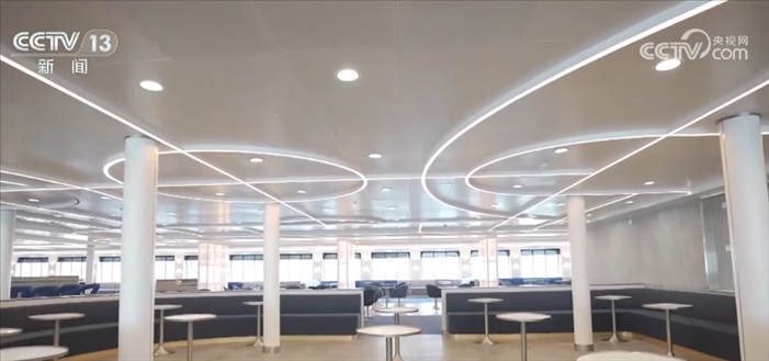 中國船舶集團(tuán)廣船國際副總經(jīng)理 周旭輝:這個船有7000平方米的公共活動區(qū)域,所有的裝修材料100%國產(chǎn)化,對本土的經(jīng)濟(jì)配套有很大的拉動作用。
