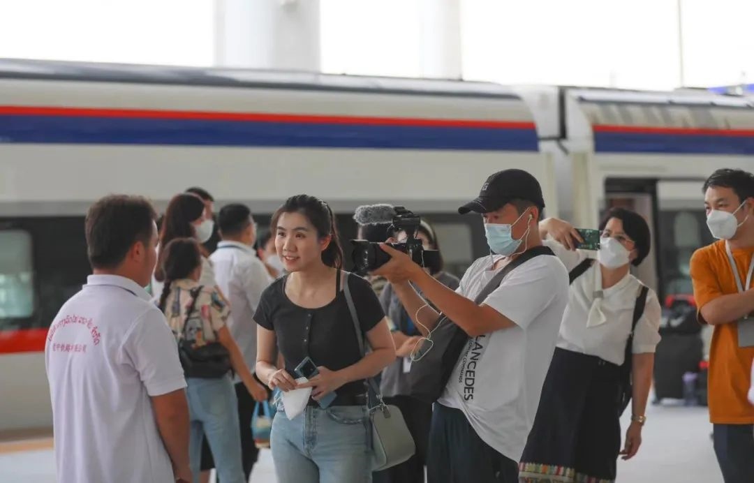 △總臺主持人鄒韻在中老鐵路“瀾滄號”動車上采訪