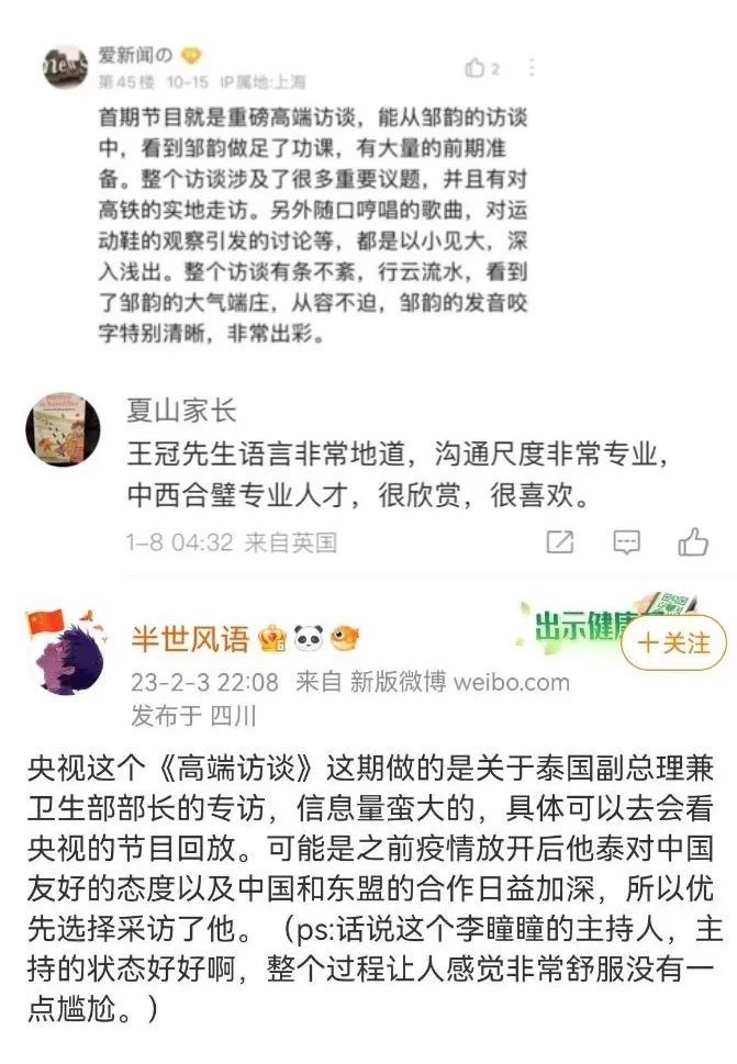 專訪泰國副總理阿努廷時,主持人李曈曈提到,他去機場迎接中國游客的新聞,在中國社交媒體有4.9億閱讀量。阿努廷感動地說,他當時說的都是肺腑之言,沒想到會有這么多人看到這條新聞。