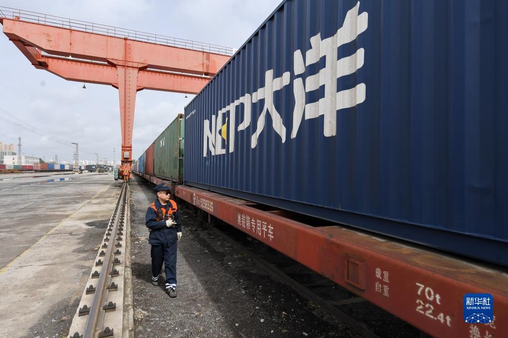 當日,河北省廊坊市正式開通中歐(中亞)班列(廊坊——塔什干)。首列開行的集裝箱班列編組55輛,由廊坊北鐵路貨場始發(fā),經霍爾果斯口岸出境,途經哈薩克斯坦,最終抵達烏茲別克斯坦塔什干,全程約6000公里,預計運行時間約15天,貨物總重量1400余噸,主要包括保溫管、機械設備、型材等。新華社發(fā)(劉向攝)