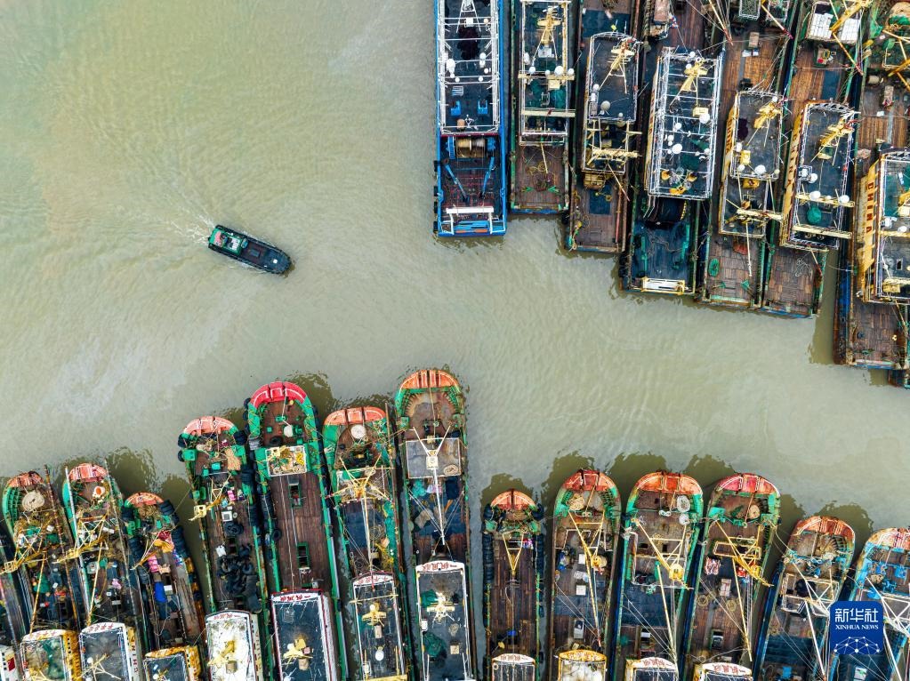 當(dāng)日,在浙江省溫嶺市石塘鎮(zhèn),漁船陸續(xù)進港???,迎接即將到來的休漁期。新華社發(fā)(徐偉杰攝)