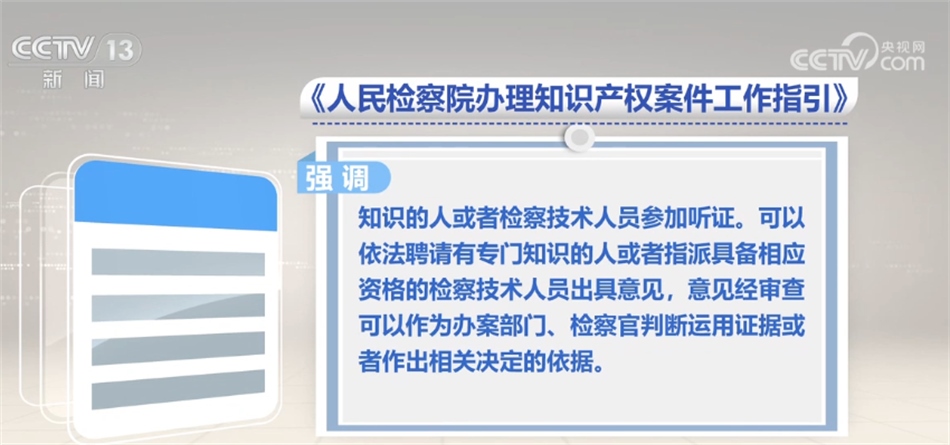同時(shí),《工作指引》強(qiáng)調(diào),遇有涉及國(guó)家秘密、商業(yè)秘密、個(gè)人隱私或者其他需要保密的情形,應(yīng)當(dāng)依利害關(guān)系人書面申請(qǐng),采取組織訴訟參與人簽署保密承諾書、對(duì)秘密信息進(jìn)行技術(shù)處理等必要的保密措施。針對(duì)知識(shí)產(chǎn)權(quán)案件技術(shù)性強(qiáng)的特點(diǎn),根據(jù)案件需要,可以邀請(qǐng)有專門知識(shí)的人或者檢察技術(shù)人員參加聽證,可以依法聘請(qǐng)有專門知識(shí)的人或者指派具備相應(yīng)資格的檢察技術(shù)人員出具意見。意見經(jīng)審查可以作為辦案部門、檢察官判斷運(yùn)用證據(jù)或者作出相關(guān)決定的依據(jù)。