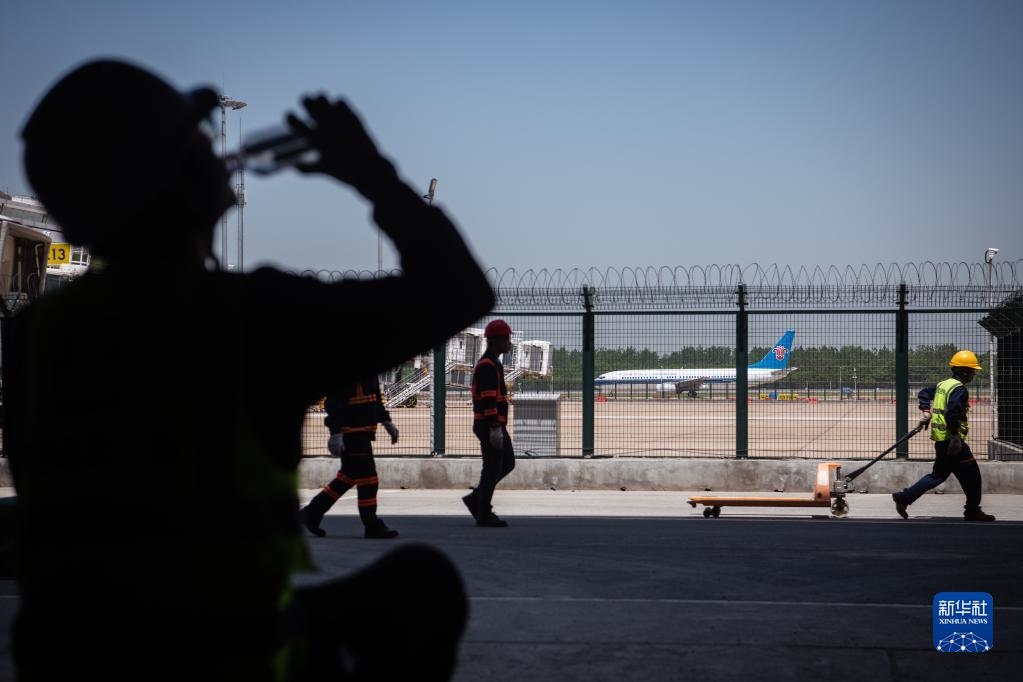 5月1日,工人在浙江省臺州市路橋機場改擴建項目施工現(xiàn)場施工。