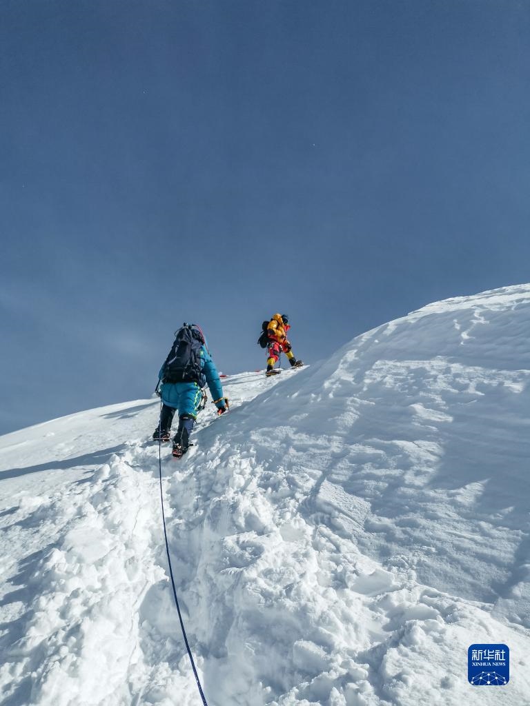 董紅娟(前)在攀登希夏邦馬峰的途中(4月26日攝)。新華社發(fā)(頓巴 攝)