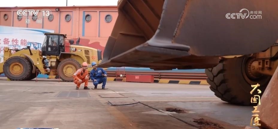 這臺自重30多噸的大型裝載機(jī),輪胎有一人多高。在清艙作業(yè)時,郭凱的視線被鏟斗擋住了,鏟斗和離艙壁的距離,只能靠手感和經(jīng)驗(yàn)來判斷。而郭凱把裝載機(jī)鏟斗和艙壁的距離精確地控制在了1毫米。如果距離大于1毫米,壁上的礦石就難以刮干凈;小于1毫米,就會刮到艙壁。剎車、油門、落大臂、起翻斗,郭凱一連貫動作行云流水、人車合一。