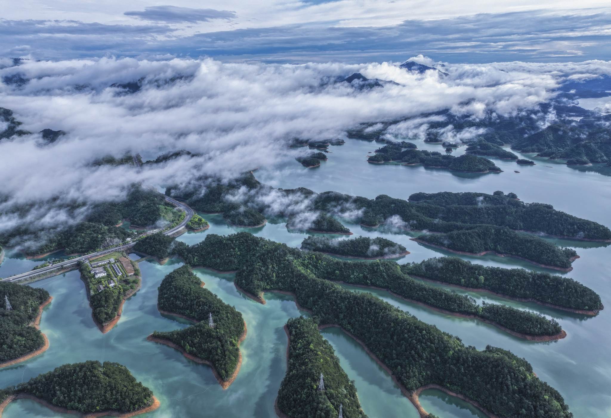 2023年5月5日,杭州,雨后的千島湖晨霧繚繞,宛若仙境。視覺中國(guó)