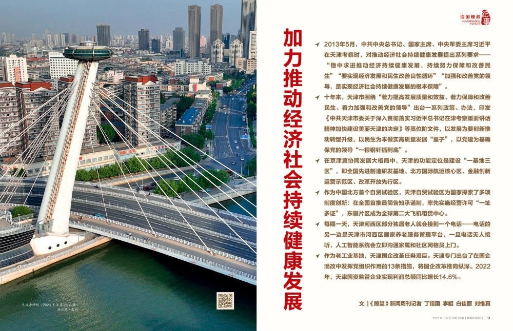 時光回到十年前。2013年5月,中共中央總書記、國家主席、中央軍委主席習近平在天津考察時,對推動經濟社會持續(xù)健康發(fā)展提出系列要求——“穩(wěn)中求進推動經濟持續(xù)健康發(fā)展,持續(xù)努力保障和改善民生”“要實現經濟發(fā)展和民生改善良性循環(huán)”“加強和改善黨的領導,是實現經濟社會持續(xù)健康發(fā)展的根本保障”。