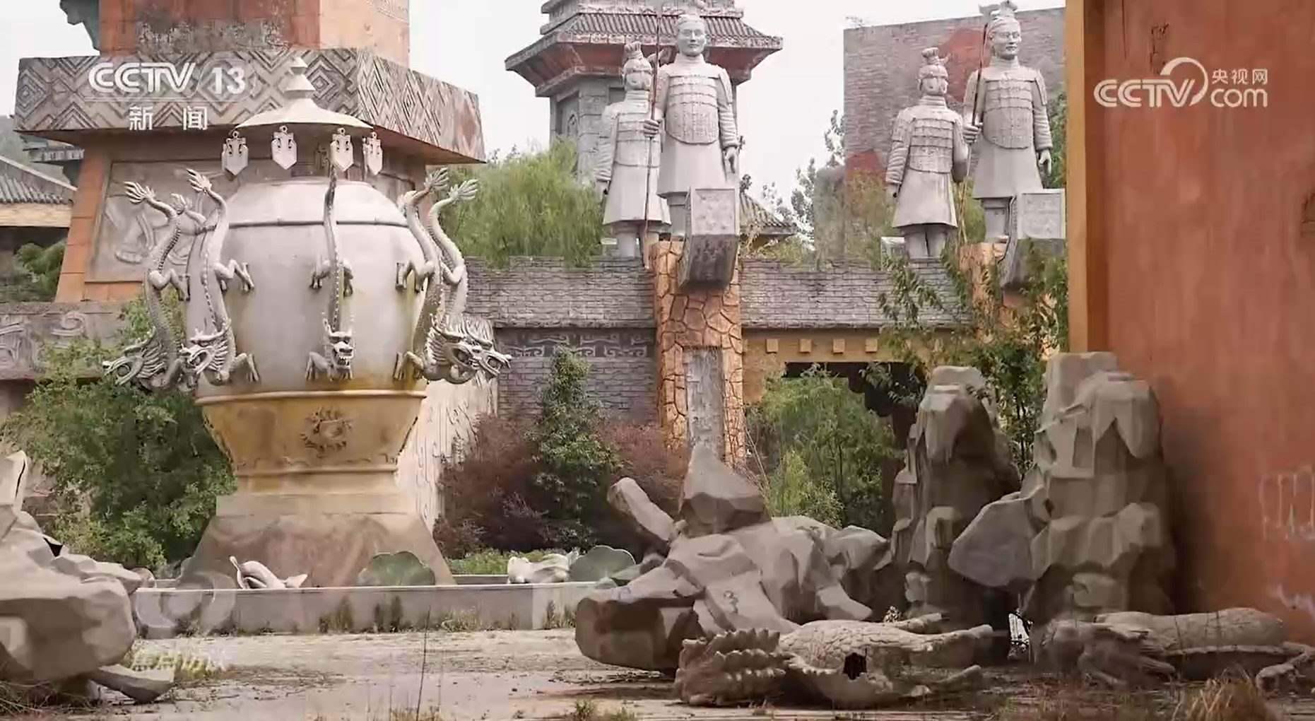 我們沒有找到動漫研發(fā)基地,只找到一個辦公樓,但它沒有一天用于動漫研發(fā),而是個售樓處。動漫基地是這樣,那么主題樂園呢?泰安志高集團在合同中承諾要“建成國內(nèi)一流水準的淮南文化科技動漫產(chǎn)業(yè)園和大型商業(yè)中心”。然而,我們看到的卻是另外一番景象:大部分建筑基本上都已封頂,娛樂設(shè)施也已就位,但是如今卻破敗不堪。