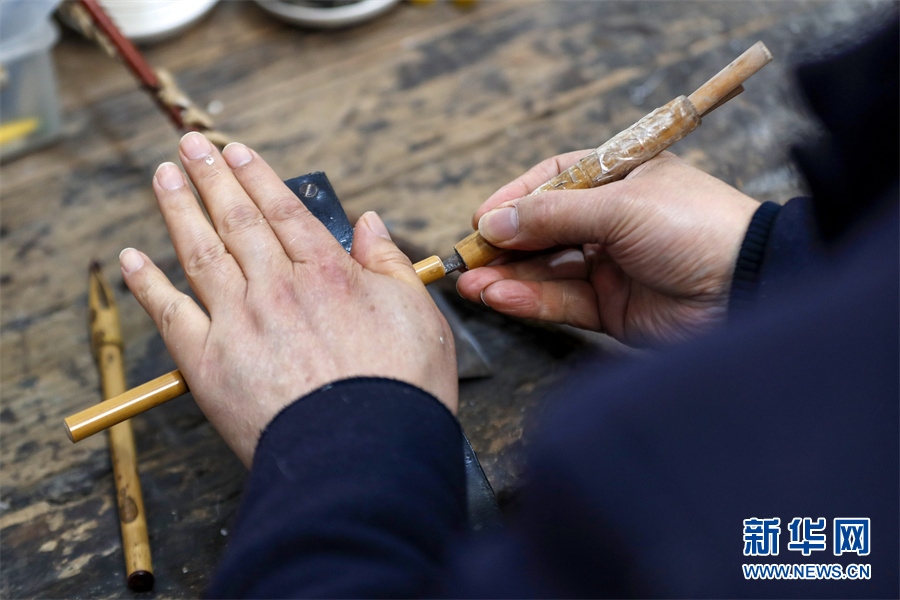 一支好的徽筆,不僅要保留傳統(tǒng)工藝,且要在原基礎(chǔ)上不斷創(chuàng)新、改良。楊文尤其重視書畫家對筆的使用反饋:“因為他們對用筆最挑剔,而且現(xiàn)代書畫家創(chuàng)作方式和作品不斷創(chuàng)新,對毛筆也有新的要求,他們提出的要求我總是盡力去滿足,也使得制筆技藝進(jìn)一步得到了提高?!? 新華網(wǎng)發(fā)(施亞磊 攝)