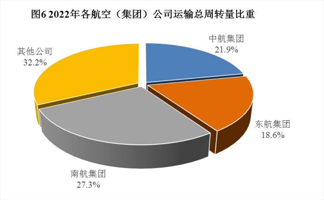 2022年各航空(集團)公司運輸總周轉(zhuǎn)量比重。來源于2022年民航行業(yè)發(fā)展統(tǒng)計公報