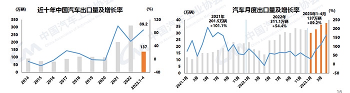 中新網(wǎng)5月11日電 (中新財經(jīng) 葛成)11日,中汽協(xié)發(fā)布汽車產(chǎn)銷數(shù)據(jù)。2023年4月,汽車產(chǎn)銷分別完成213.3萬輛和215.9萬輛,同比分別增長76.8%和82.7%;新能源汽車產(chǎn)銷分別完成64萬輛和63.6萬輛,同比均增長1.1倍;汽車企業(yè)出口37.6萬輛,同比增長1.7倍。