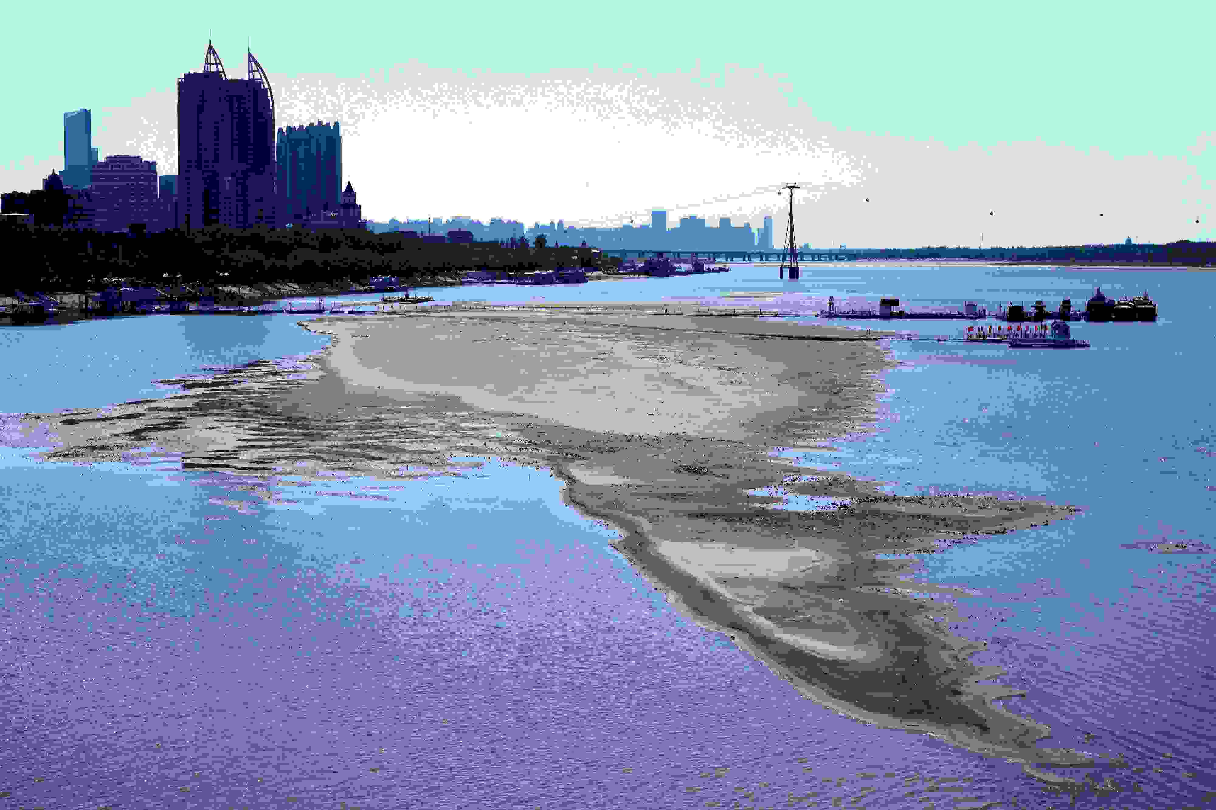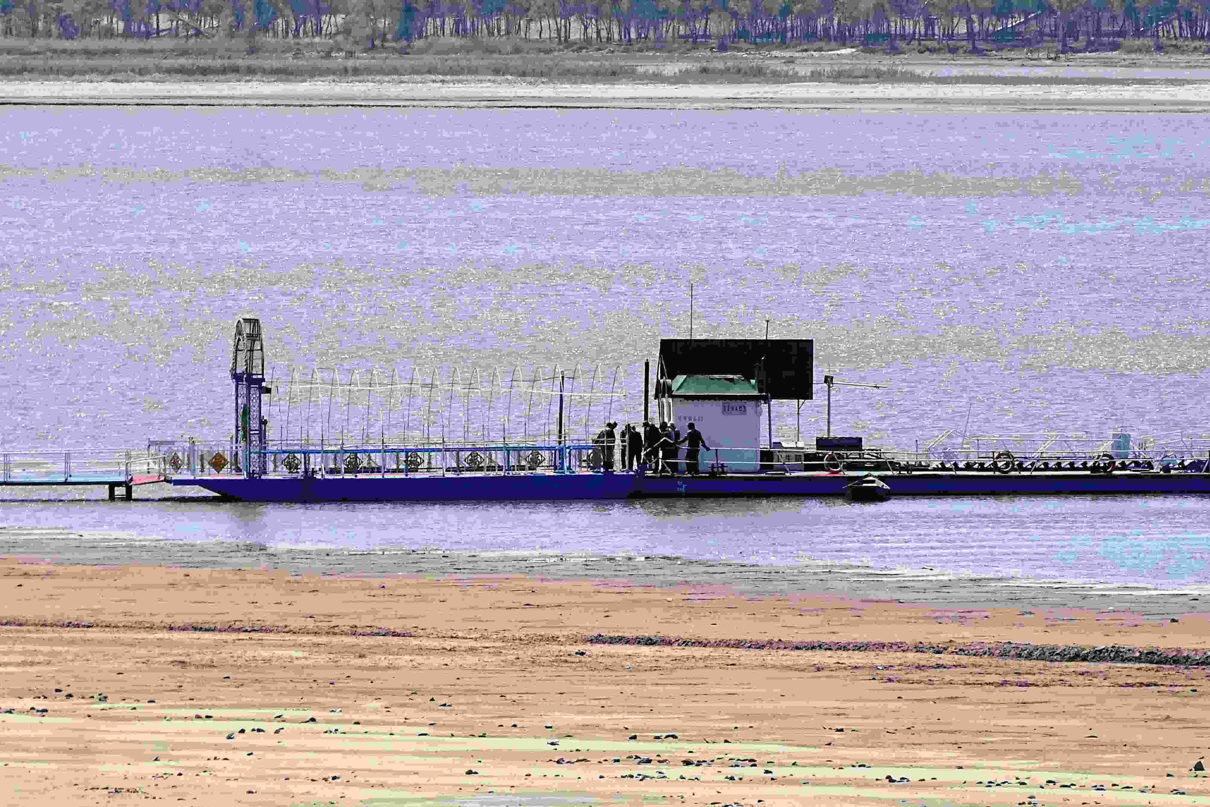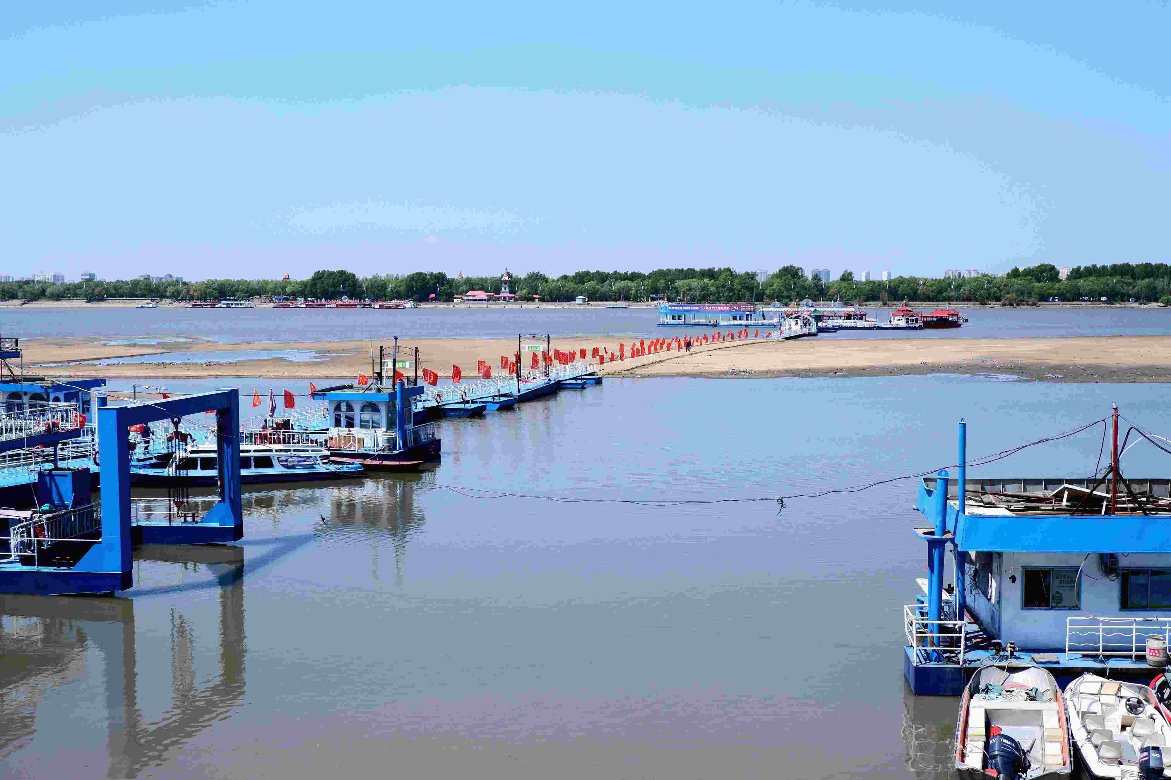 近日,受上游來水量減少和無明顯降水天氣影響,松花江哈爾濱段水位持續(xù)走低,江渚大面積裸露,往返太陽島風(fēng)景區(qū)輪渡暫停通航。 吳胡荼 攝