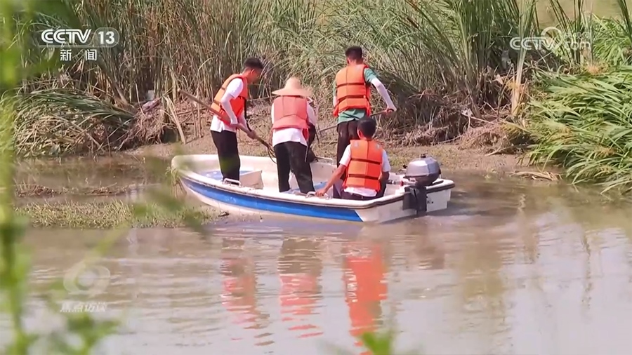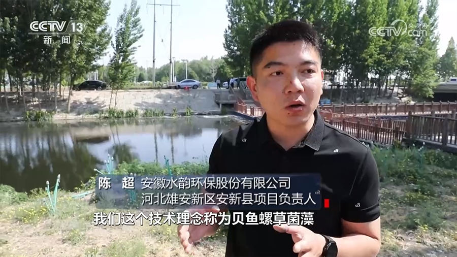 安徽水韻環(huán)保股份有限公司河北雄安新區(qū)安新縣項(xiàng)目負(fù)責(zé)人陳超:“水下是木樁搭的貝床。貝分為濾食性和刮食性,對(duì)水體里面浮游生物,尤其像菌藻類水里面的COD(化學(xué)需氧量)、氨氮、總磷,具有一定的消解作用。我們這個(gè)技術(shù)理念稱為貝魚螺草菌藻,也就是我們常說(shuō)的大魚吃小魚、小魚吃蝦米,形成閉環(huán)生物鏈,讓這個(gè)水體自凈能力提升,能穩(wěn)定在三類到四類水?!?/p>