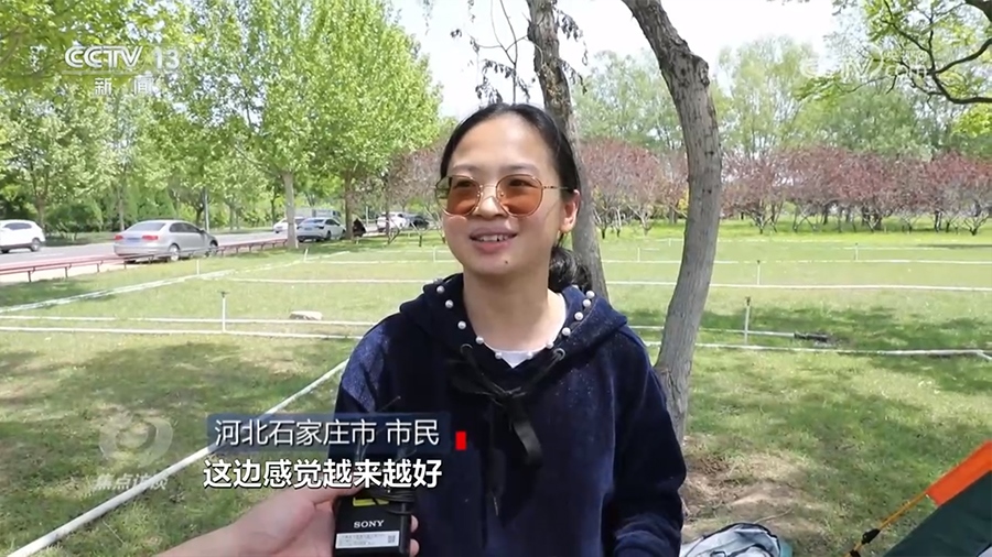 離開(kāi)了白洋淀,記者又來(lái)到河北省石家莊市。周日,陽(yáng)光和煦,在郊外,很多家庭都會(huì)開(kāi)著車,帶著帳篷、飲食,去河邊露營(yíng),感受這初夏的暖意。