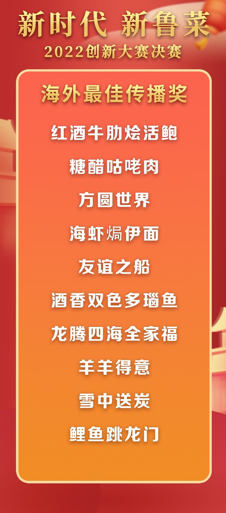5月18日至19日,“新時代 新魯菜”2022創(chuàng)新大賽決賽暨頒獎活動在山東省濰坊市峽山區(qū)成功舉行,標(biāo)志著本屆大賽圓滿結(jié)束。經(jīng)過激烈角逐,大賽最終頒發(fā)出2022年度“十大魯菜創(chuàng)新菜品”、“20款我最喜愛的新魯菜”、“100款最具價值新魯菜”、“十大創(chuàng)新面點(diǎn)”、“預(yù)制菜轉(zhuǎn)化創(chuàng)新獎”和“海外最佳傳播獎”等獎項。此外,大賽組委會還頒發(fā)了“最佳組織獎”、“融媒貢獻(xiàn)獎”和“特殊貢獻(xiàn)獎”等獎項。