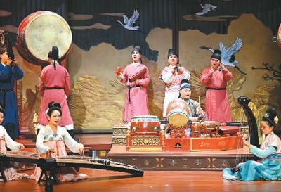 陜西省西安市大唐芙蓉園內上演的舞臺劇《鼓》。
