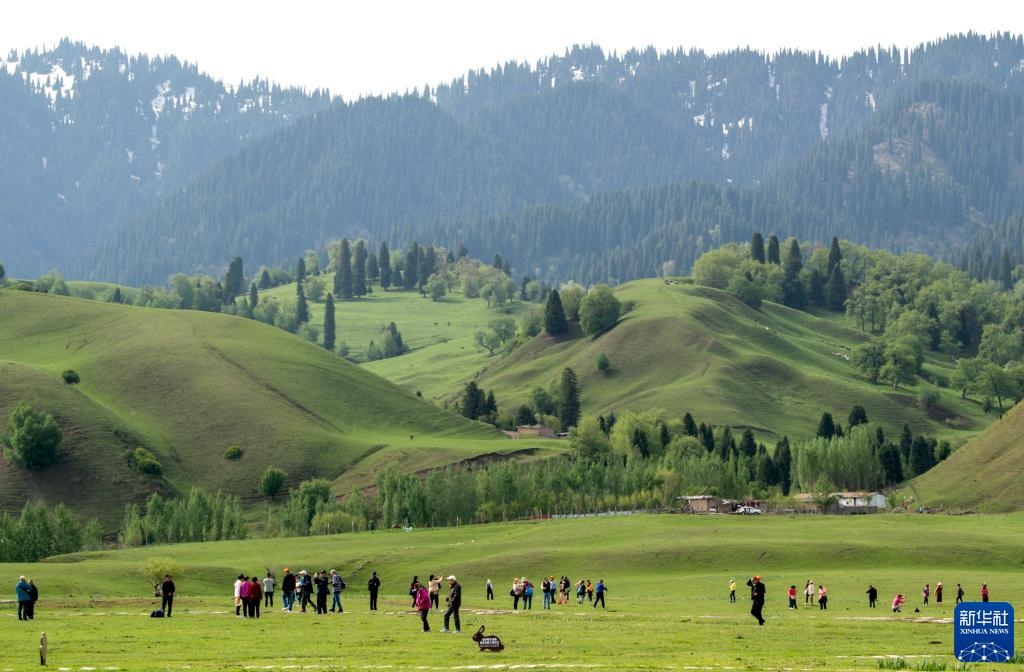 5月19日,游客在位于新疆新源縣的那拉提旅游風(fēng)景區(qū)觀光。   新華社記者 王菲 攝