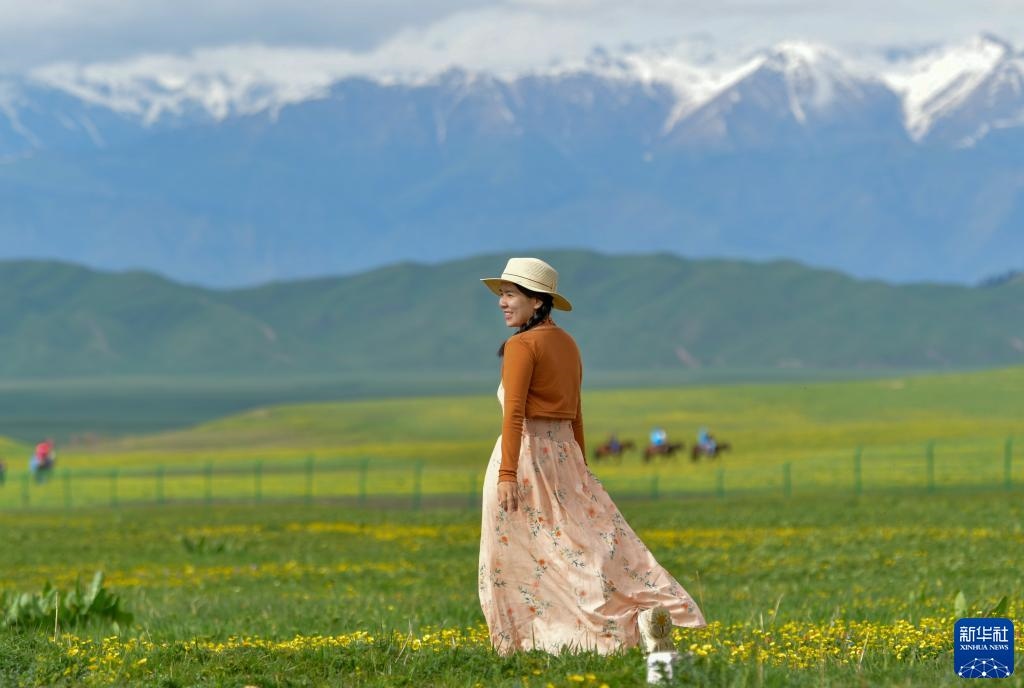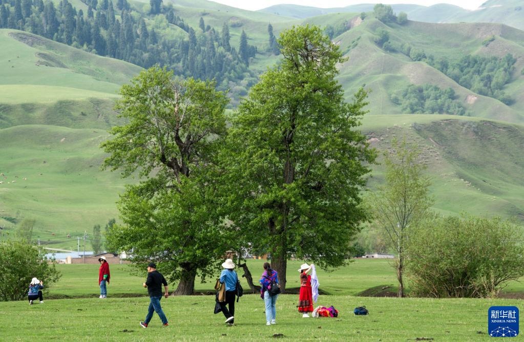5月20日,游客在位于新疆新源縣的那拉提旅游風(fēng)景區(qū)觀光。   新華社記者 王菲 攝