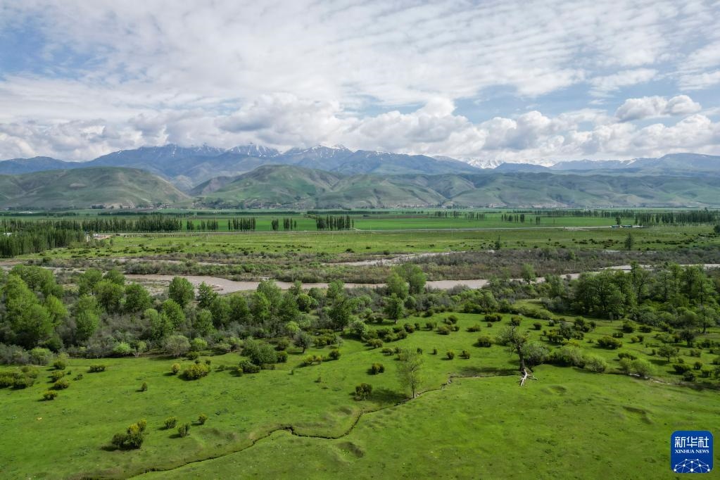 5月20日拍攝的那拉提河谷草原風(fēng)光(無人機(jī)照片)。   新華社記者 郝昭 攝