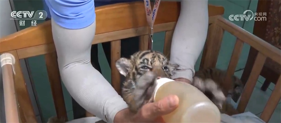 據(jù)了解,這5只虎寶寶兩只雄性三只雌性。由于虎媽媽年齡偏大、體質(zhì)偏弱,加之習性暴躁,在產(chǎn)下5只虎寶寶后不久便不再照顧它們。5只虎寶寶生命體征極其脆弱,隨時可能夭折,為此,飼養(yǎng)員采取了人工哺乳方式進行喂養(yǎng)。