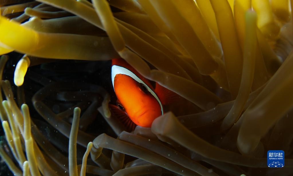 這是在蜈支洲島海域海洋牧場(chǎng)拍攝的小丑魚(yú)(5月17日攝)。 新華社記者 楊冠宇 攝