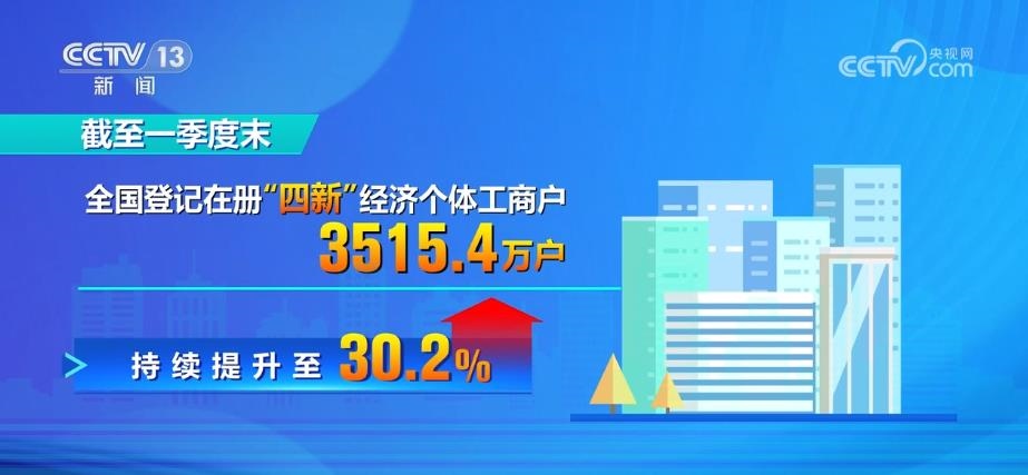 近年來,隨著新技術(shù)、新產(chǎn)業(yè)、新業(yè)態(tài)、新模式的蓬勃發(fā)展,網(wǎng)絡直播、微商電商等“新個體經(jīng)濟”不斷涌現(xiàn),為我國經(jīng)濟轉(zhuǎn)型升級注入了新的活力。截至一季度末,全國登記在冊“四新”經(jīng)濟個體工商戶3515.4萬戶,總量占比由2019年的24.9%持續(xù)提升至30.2%。