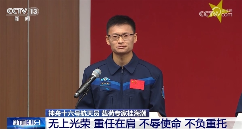 神舟十六號航天員 指令長景海鵬:今天,一個全新的組合也是首次亮相,我們乘組由駕駛員、首位飛行工程師和首位載荷專家組成,這一變化也意味著我們將承擔(dān)更加復(fù)雜、更加繁重、更加艱巨的任務(wù)。我們堅信,中國空間科學(xué)的春天已經(jīng)到來。我們有決心、有信心、有能力圓滿完成任務(wù),用我們的雙手把所有科學(xué)家的心血、汗水、智慧、夢想變成現(xiàn)實!