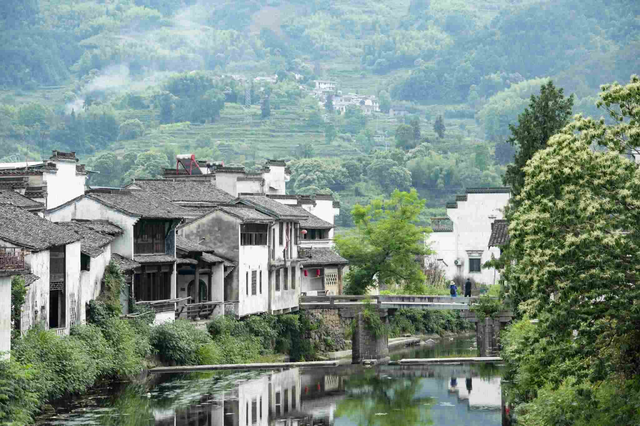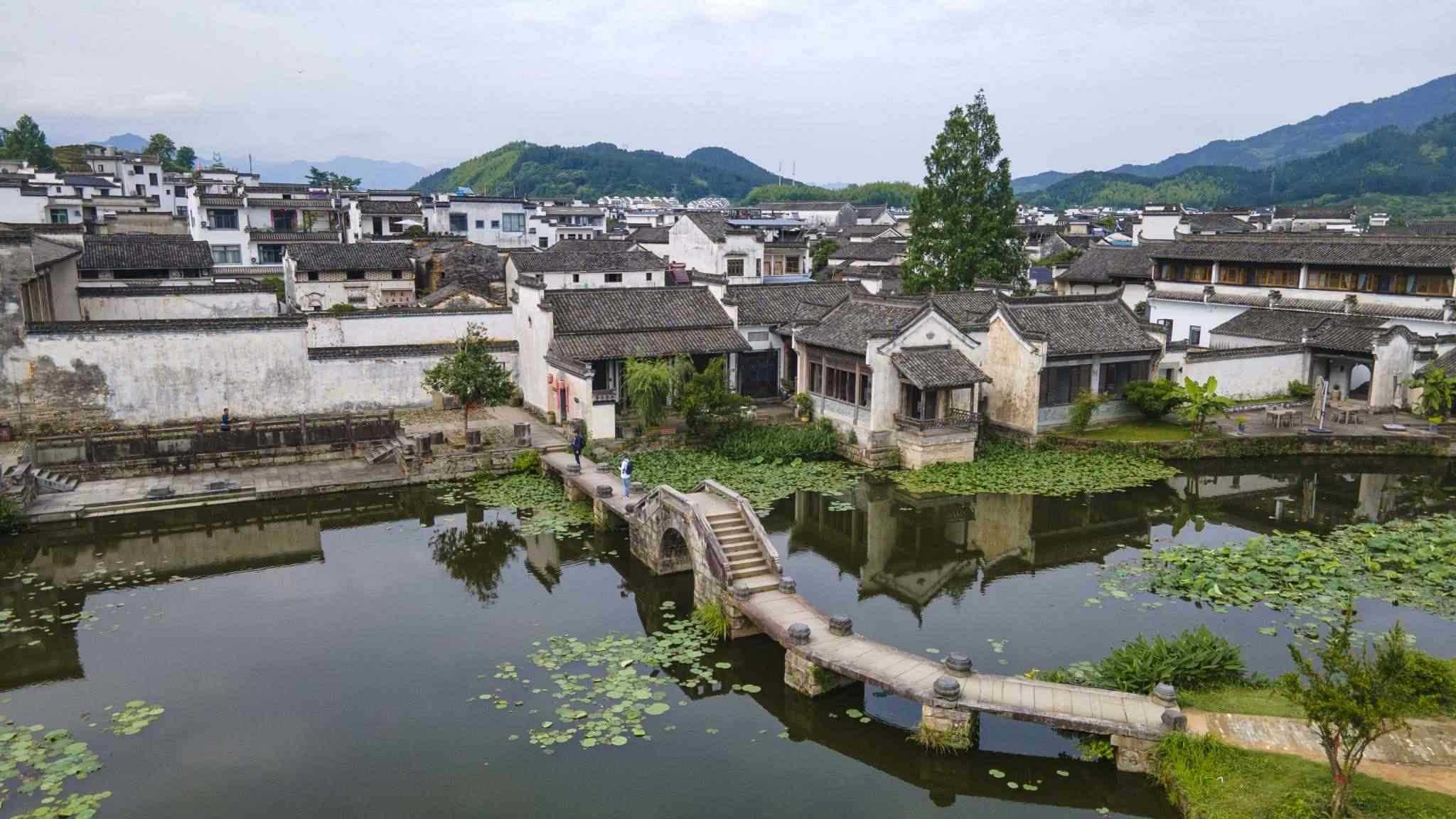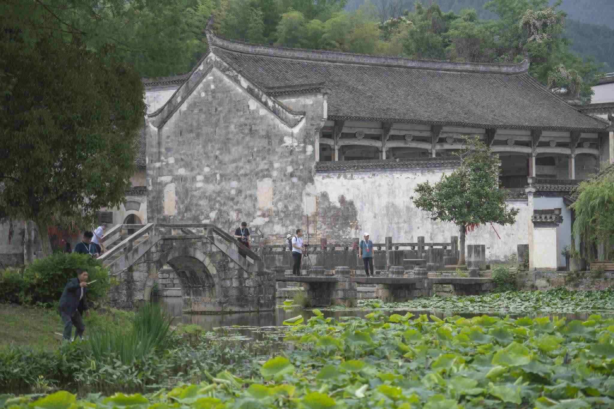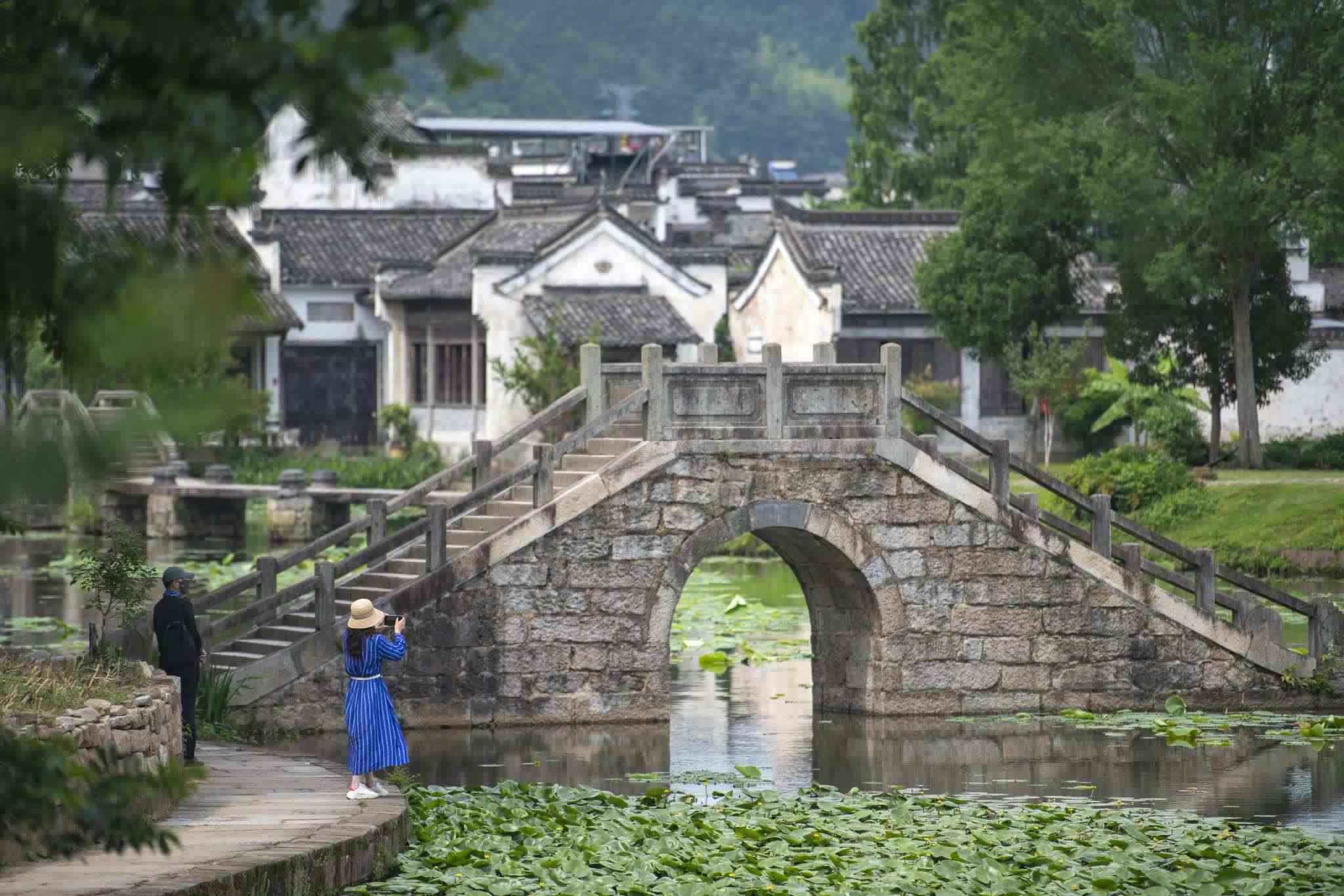 安徽黃山:呈坎村綠樹成蔭碧水蕩漾